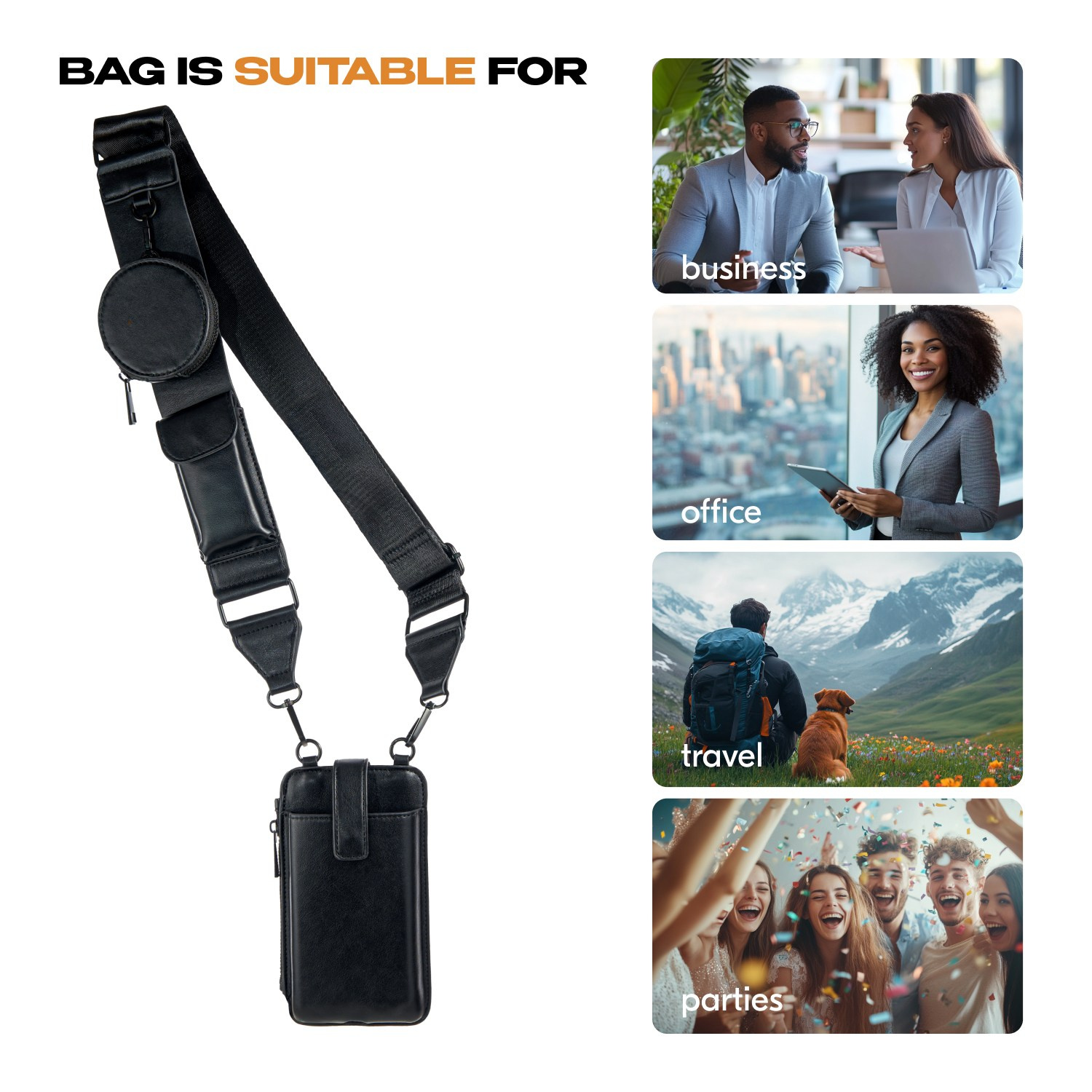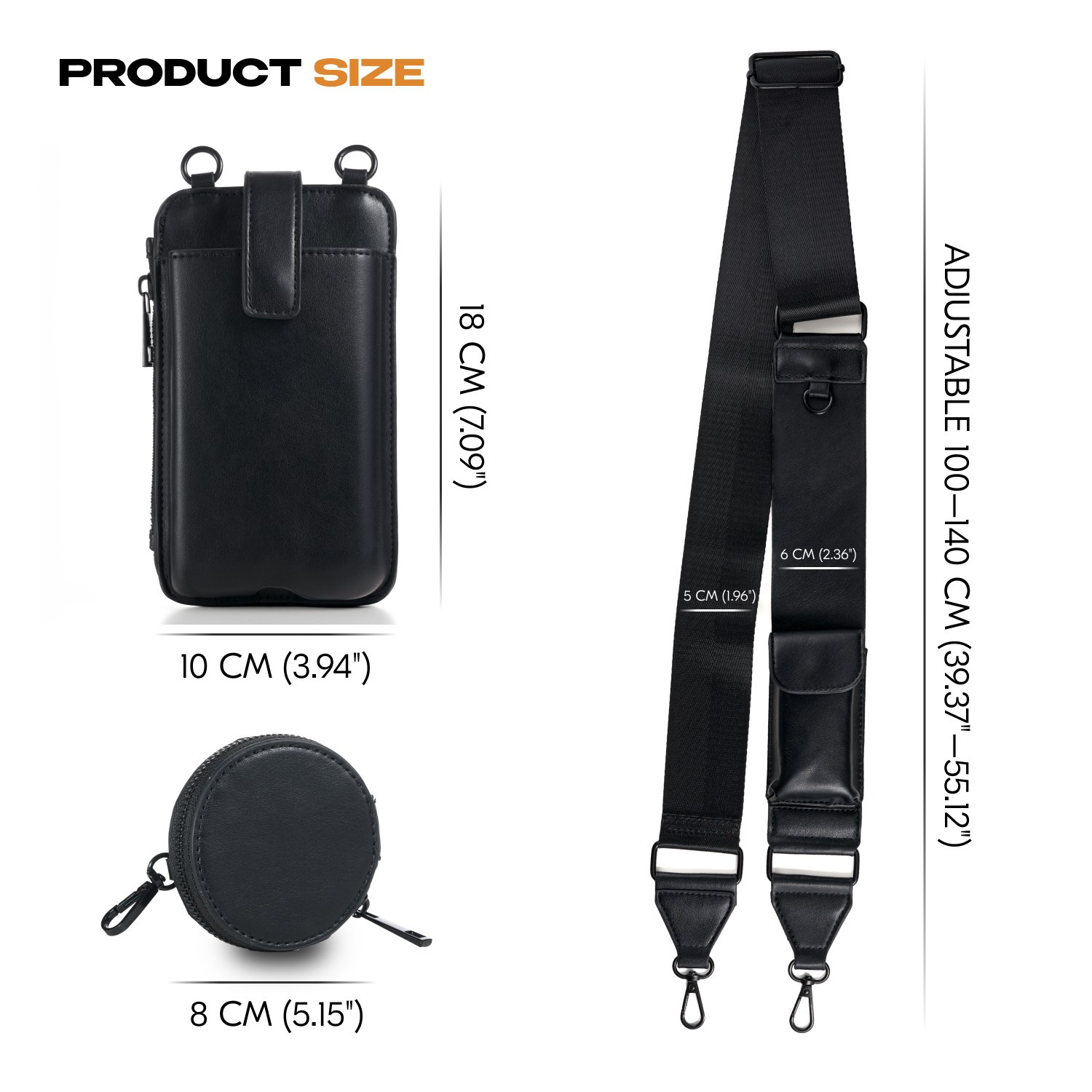 - Imágenes de Estilo de Vida: Se mostró la bolsa crossbody para teléfono en acción, resaltando cómo puede usarse en varios escenarios (por ejemplo, actividades al aire libre, viajes, quehaceres diarios).